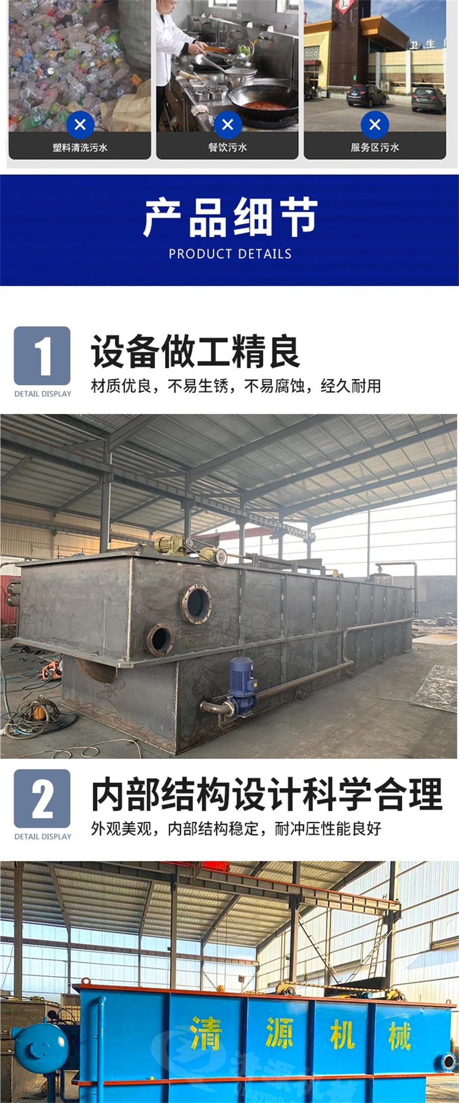 此外,我公司不僅生產屠宰污水處理設備,還生產屠宰一體化污水處理設備、氣浮機、洗砂污水處理設備、固液分離設備、養殖污水處