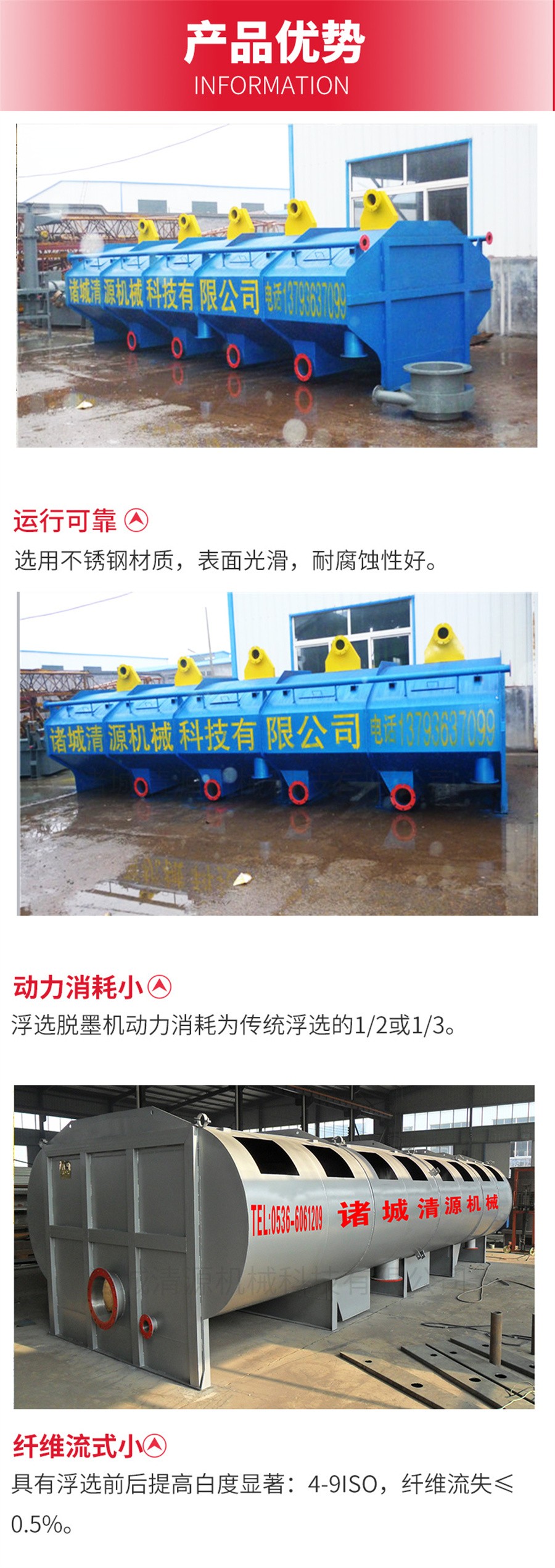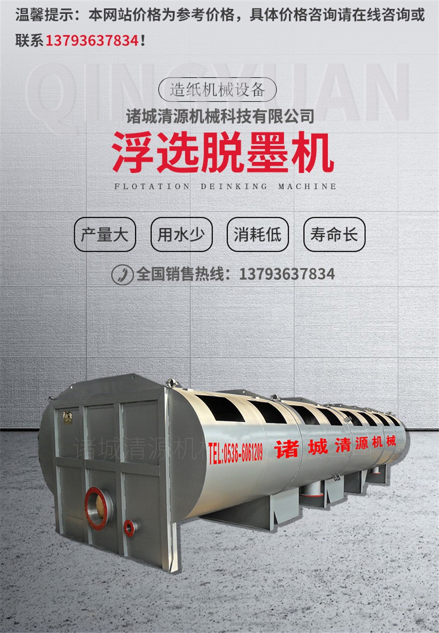 浮選脫墨機具有浮選前后提高白度顯著:4-9ISO,纖維流失≤0.5%,動力消耗為傳統(tǒng)浮選的1/2或1/3。能夠去除油墨顆粒的尺寸范圍大,大約5-550微米。內置式曝氣元件,有利于工藝氣體回路封閉。槽體間組合合理,液位控制簡單,運行可靠,產(chǎn)量范圍大。